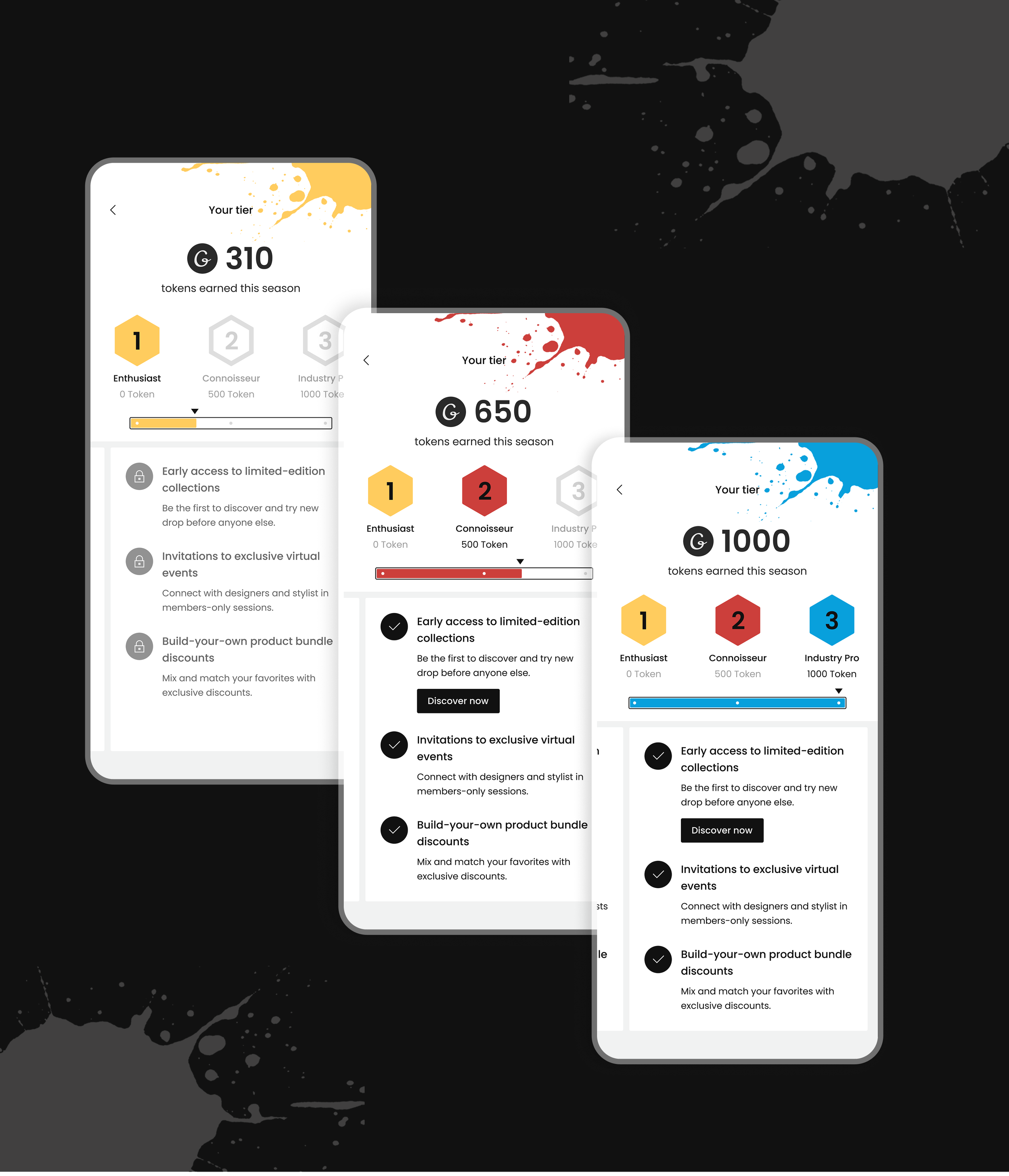 One of the most exciting aspects of this project was the gamification system. We created a dynamic flow where users collect tokens, progress through different tiers, and unlock access to exclusive events and meaningful perks. By introducing this playful structure, we transformed a routine shopping journey into a more interactive and motivating experience, increasing both user engagement and long-term retention.